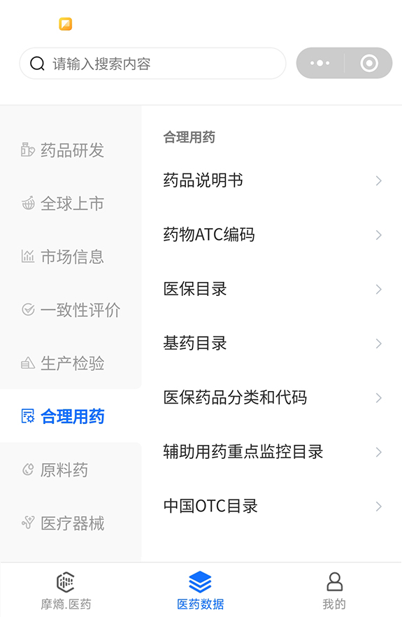 打开微信→搜索小程序“摩熵医药”→“医药数据”→“合理用药”→“医保目录”→输入药名。