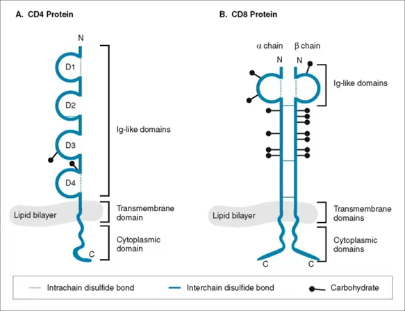 而且,这两把钳子不仅能让T细胞牢牢抓住APC,它们的胞内段也能传递信号,进一步增强或调节T细胞的反应。当然,CD4和CD8这两把钳子也不是完全一样的。CD4是一个单体蛋白,结构相对简单;而CD8则由两个亚基组成,结构上更复杂一些。这暗示着它们传递的信号可能有所不同。此外,与紧密贴合TCR的CD3复合体不同,CD4和CD8更像是松散地结合在TCR和CD3复合体旁边。它们的作用时机也很有意思,当TCR识别并结合MHC分子上的抗原肽后,CD4和CD8才会迅速行动,牢牢钳住这个三元复合物,起到稳定作用,并且进一步增强TCR传递的信号。这就像一个团队协作,TCR负责精准识别,CD3负责信号传递,CD4或CD8负责稳定结合并提供额外的调控信号。