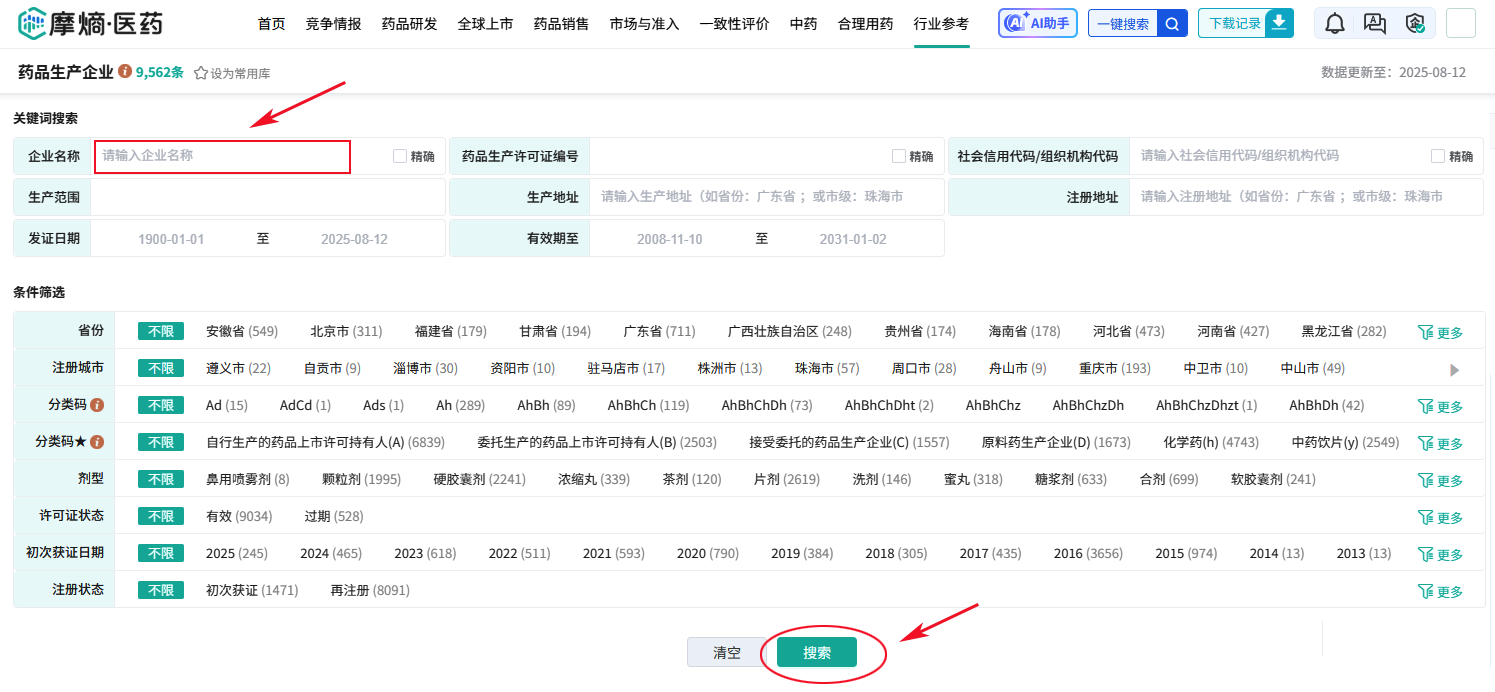 2025年8月19日,根据摩熵BCPM旗下摩熵医药的"药品生产企业数据库"数据统计,国内目前药品生产企业数量已达到9562家,其中许可证状态有效的为9034家,许可证状态过期的为528家(通过其药企生产资质查询统计)。那么你们知道这些药企生产资质以及药品生产企业信息是如何查询么?