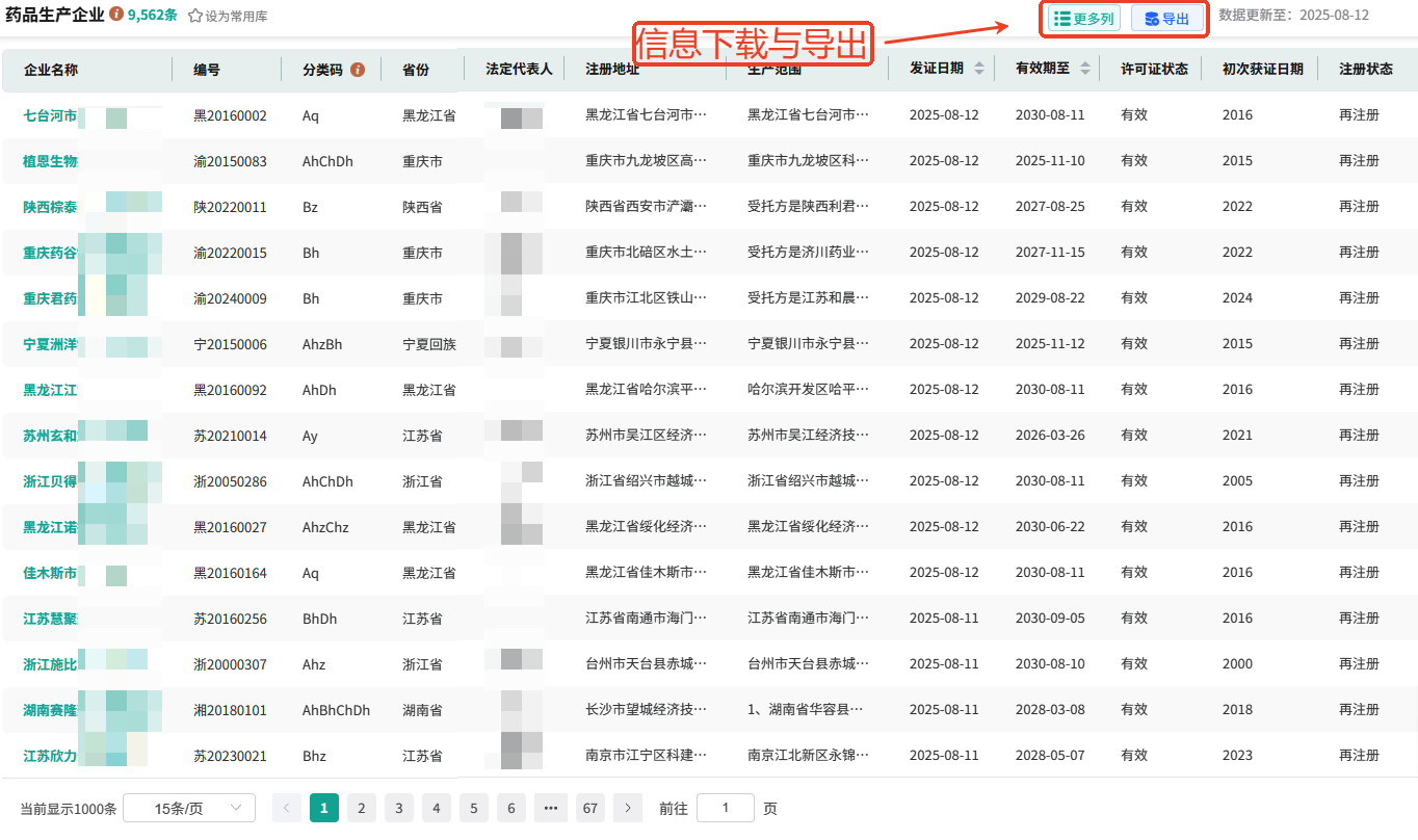 即使是很多业内同仁可能都不知道如何高效的批量获取目标药品生产企业信息,为此笔者将详细的讲解一下如何通过药品生产企业的名称、生产许可证编号、社会信用代码/组织机构、生产范围、生产地址、注册地址、发证日期、省份、城市、分类码(自行生产、委托生产的药品上市许可持有人及被委托生产企业等分类)等信息进行筛选、查询与下载。