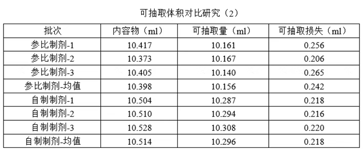 (1)请按参比制剂说明书用法用量,模拟临床使用对自制制剂和参比制剂的可抽取体积进行对比研究,进一步证明灌装量的合理性。