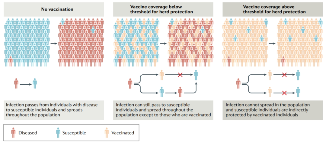 尽管通过疫苗接种对个人的直接保护一直是大多数疫苗开发的重点,并且对证明新疫苗的效力至关重要。但另一方面,疫苗诱导保护的一个关键附加组成部分是群体免疫,或者更准确地说是“群体保护”。