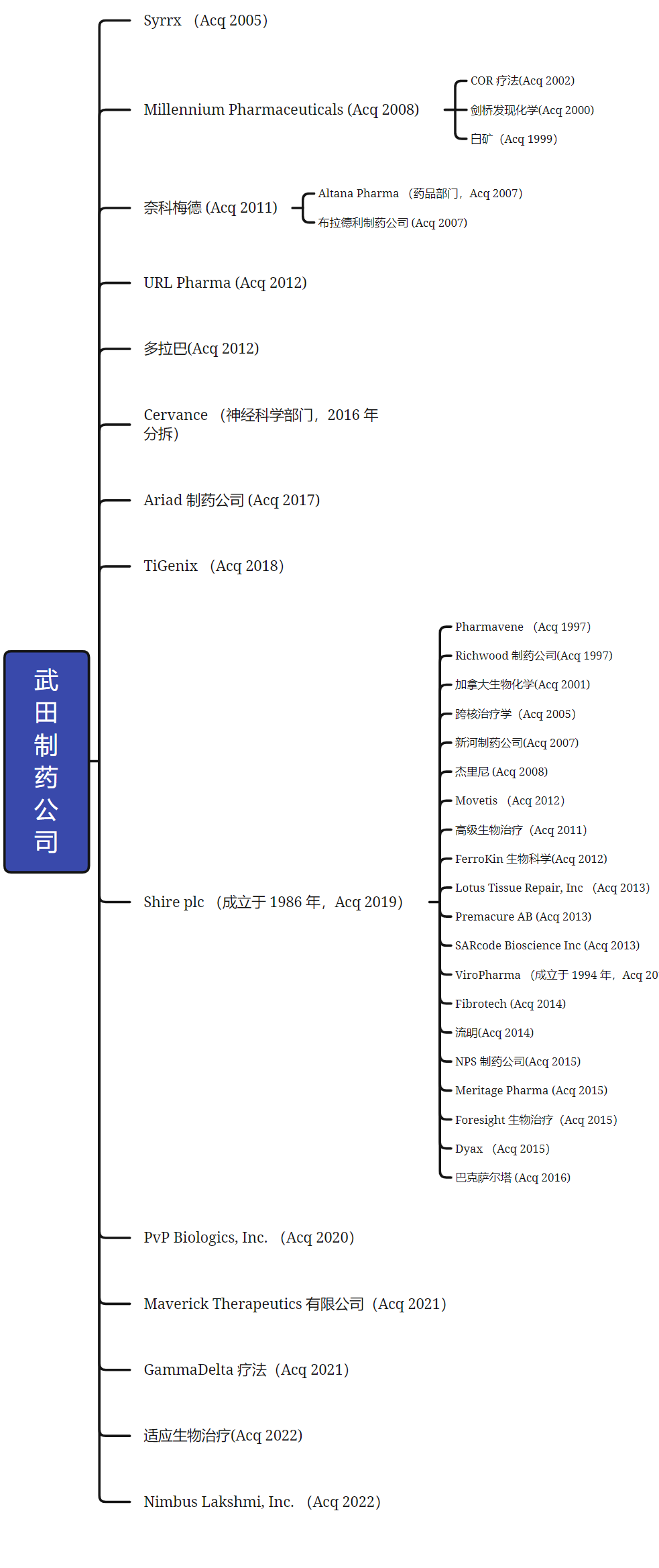 2022 年 1 月,武田宣布将行使其选择权收购Adaptate Biotherapeutics及其基于抗体的 γδ T 细胞技术,将 Adaptate 及其前母公司 GammaDelta Therapeutics 重组为一个组织。同年12月,该公司宣布将以高达60亿美元的价格从Nimbus Therapeutics, LLC收购Nimbus Lakshmi, Inc.及其先导化合物NDI-034858(一种变构 TYK2抑制剂) 。