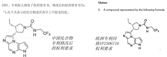 中国乌帕替尼化合物专利无效审查过程中,专利权人修改了权利要求书,仅保留了涉及乌帕替尼结构式的1项权利要求。