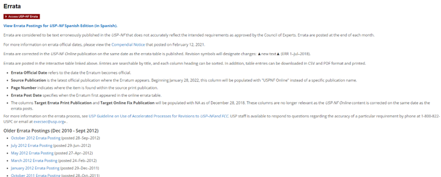 图7 USP-NF中的勘误信息信息