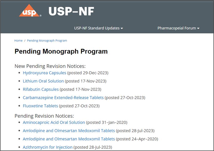 图6 USP-NF中的待审各论信息