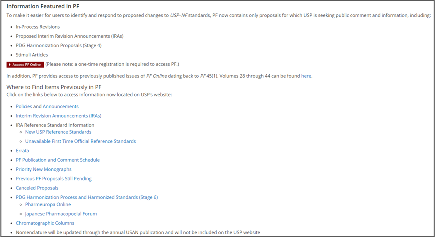 1.2美国药典论坛(Pharmacopeial Forum, PF)