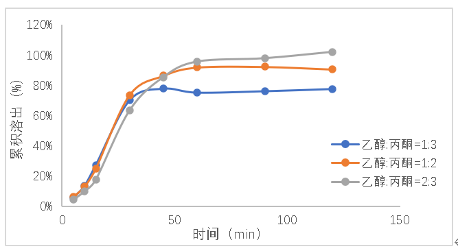 图7:不同比例溶剂所制备的固体分散体样品溶出对比
