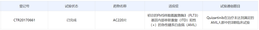 [2] Naqvi K, Ravandi F. FLT3 inhibitor quizartinib (AC220). Leuk Lymphoma. 2019 Aug;60(8):1866-1876. doi: 10.1080/10428194.2019.1602263.