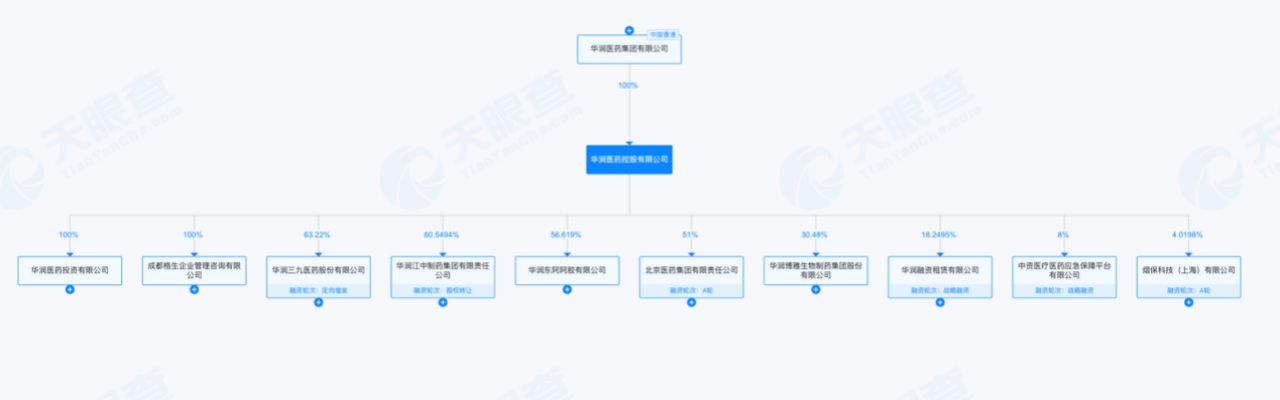 天眼查显示,东阿阿胶、江中药业、博雅生物、华润三九等多家“华润系”上市药企,均隶属医药控股体系。