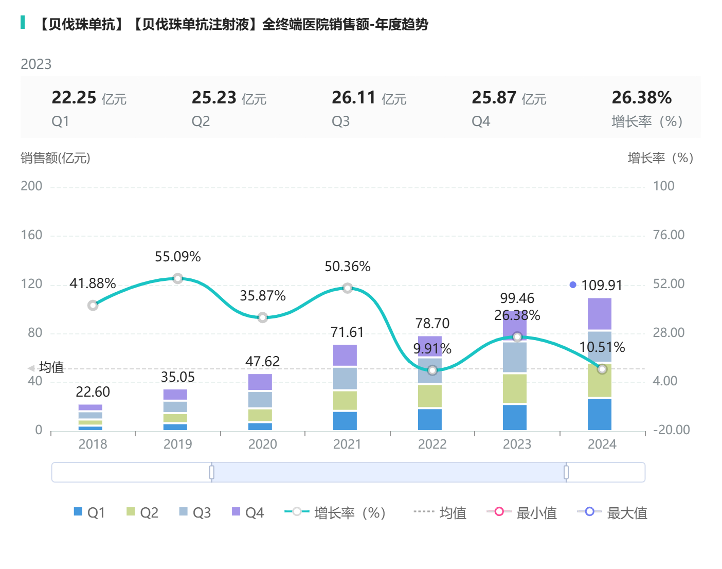 在齐鲁的推波助澜下,贝伐珠单抗的市场开始爆发,一年一个台阶地往上攀登,直到超过百亿。