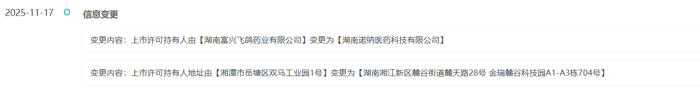 有意思的是,经查,诺纳医药持有的6个富兴飞鸽代工品种,均是由富兴飞鸽转让而来的,持有人转让完成时间就在11月初。