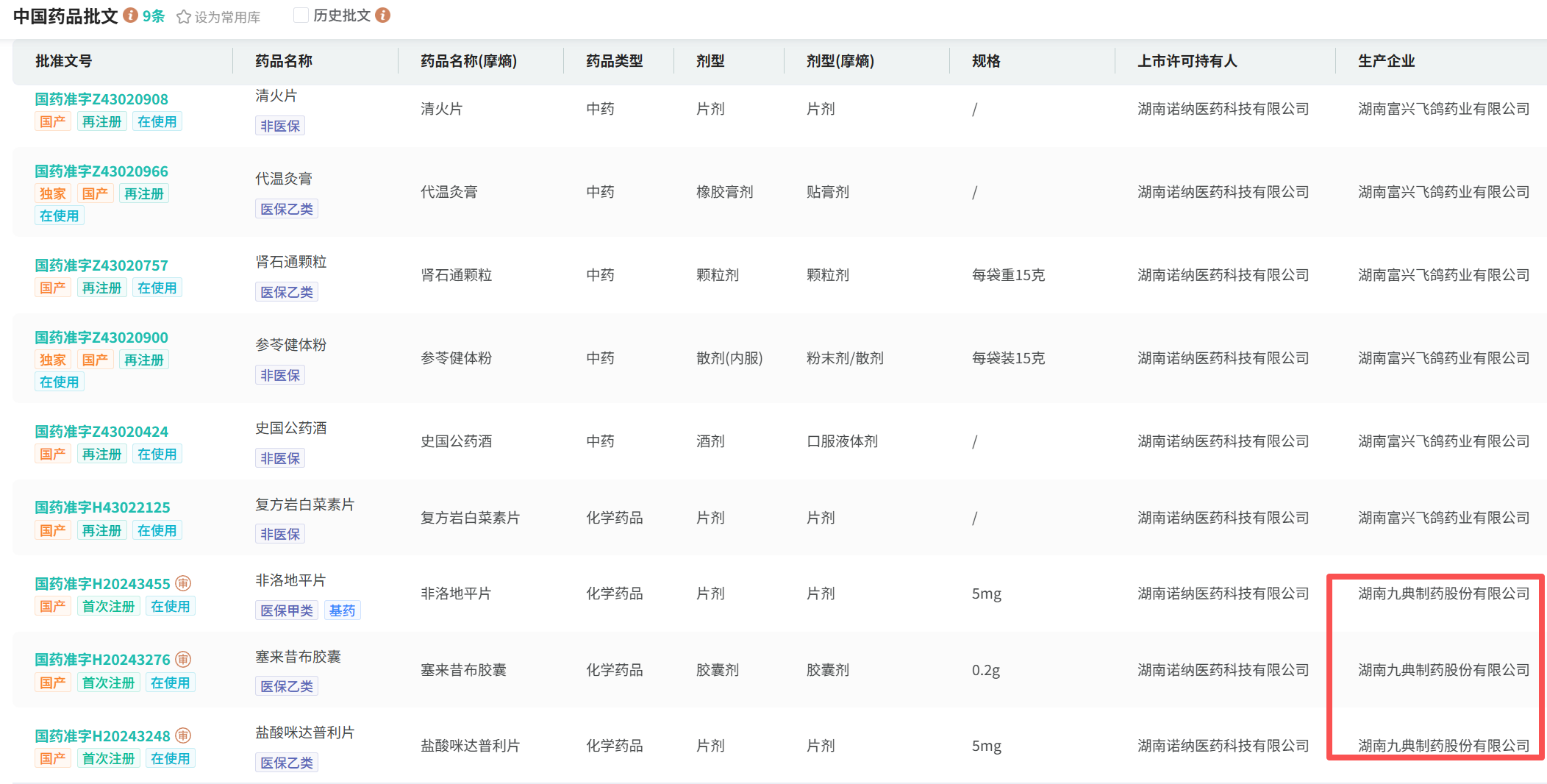 被投资方诺纳医药,成立于2021年10月,旗下共持有9个品种(5个中药和4个化药)。