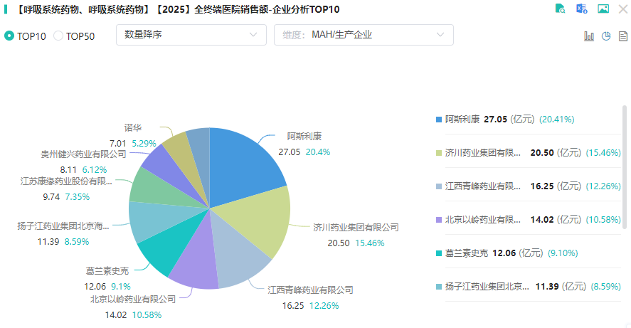 2025H1医院端呼吸系统药物企业竞争格局