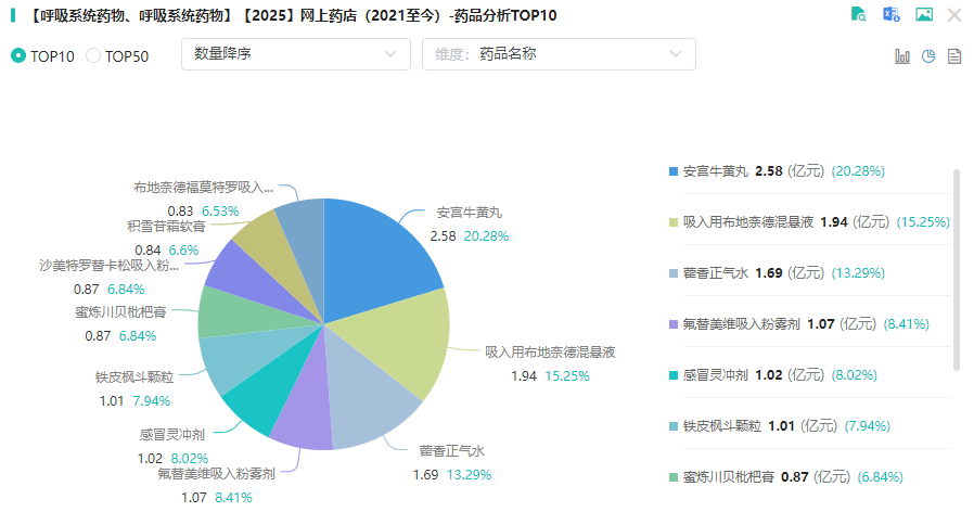 2025H1网上药店呼吸系统药物销售TOP10