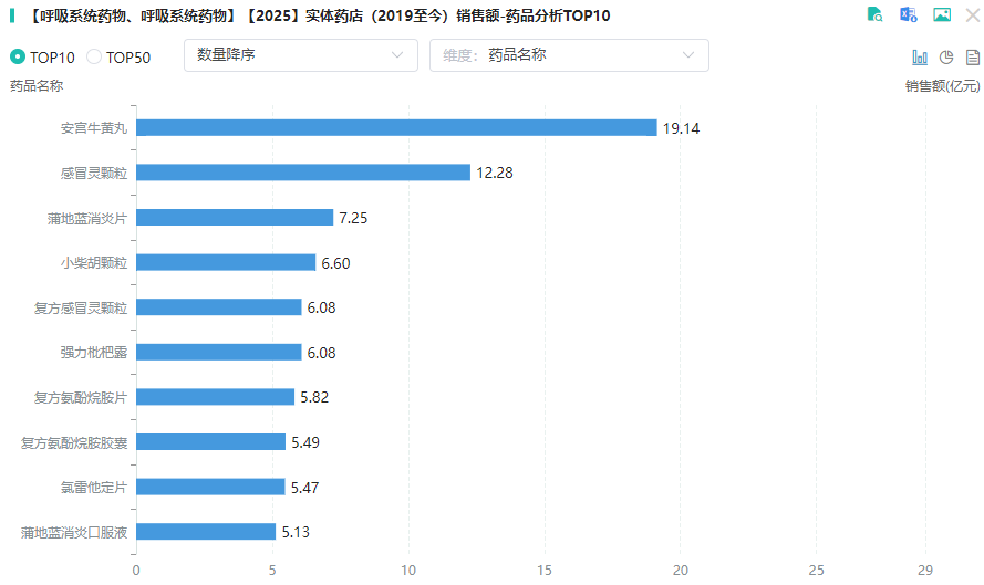 2025H1实体药店呼吸系统药物销售TOP10