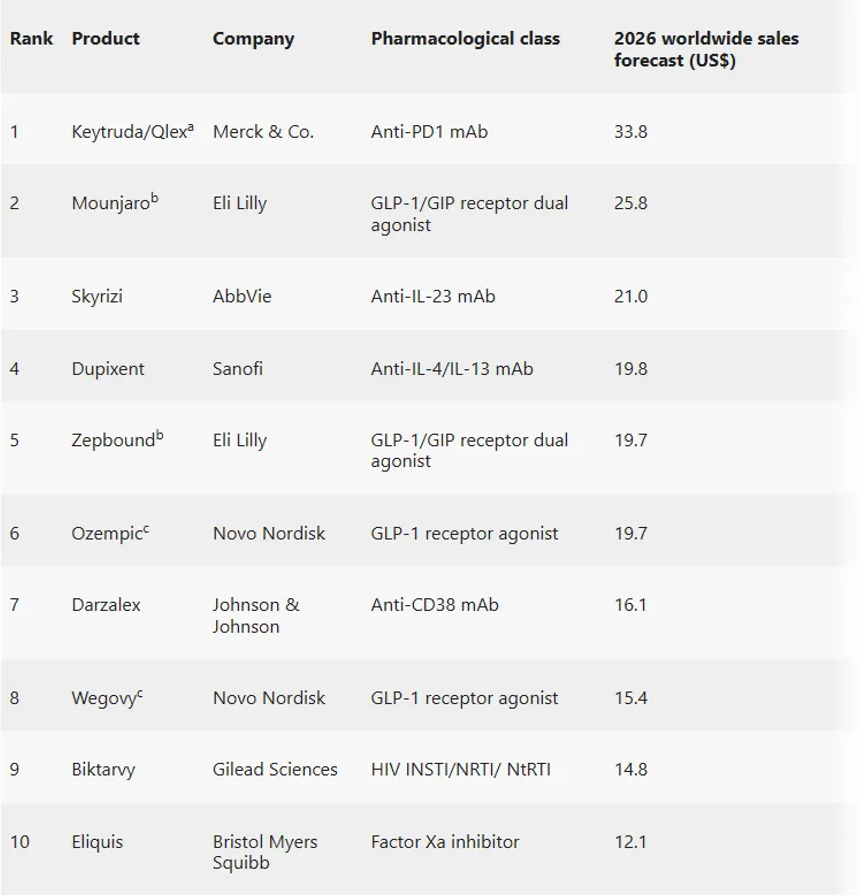 2026年畅销药预测TOP10