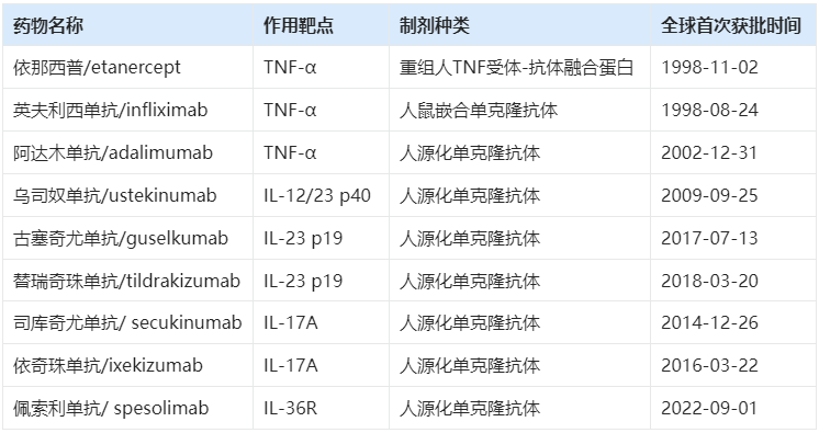 - 替瑞奇珠单抗:默沙东原研、康哲引进,针对性地阻断IL-23。 2018年海外上市,2023年5月获NMPA批准,为国内首款获批的IL-23抑制剂。