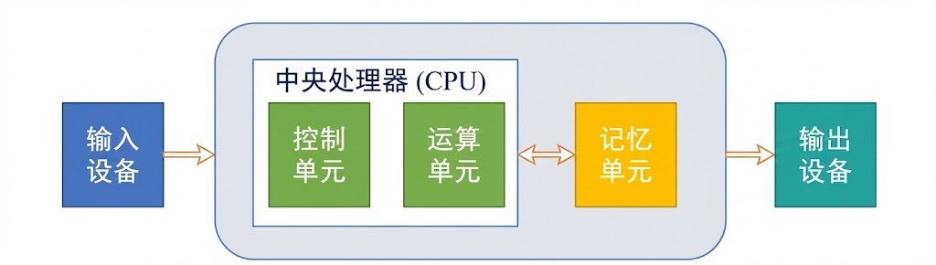 (1)中央处理器(CPU):包含控制单元(指挥交通)和运算单元(算术与逻辑操作)。