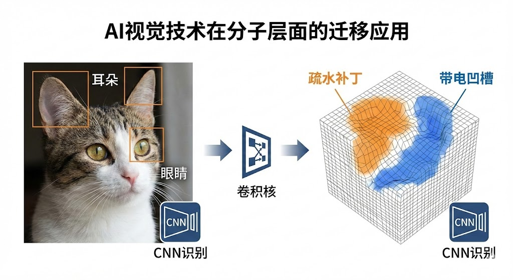 - 3D CNN:将蛋白质的结合口袋视为三维体素网格(Voxel),卷积核在三维空间滑动,识别疏水腔、氢键受体等局部微环境,预测配体结合亲和力。