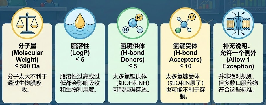虽然这只是经验法则,并非铁律,但它时刻提醒我们:活性不是万能的,药物必须能被身体吸收和转运。