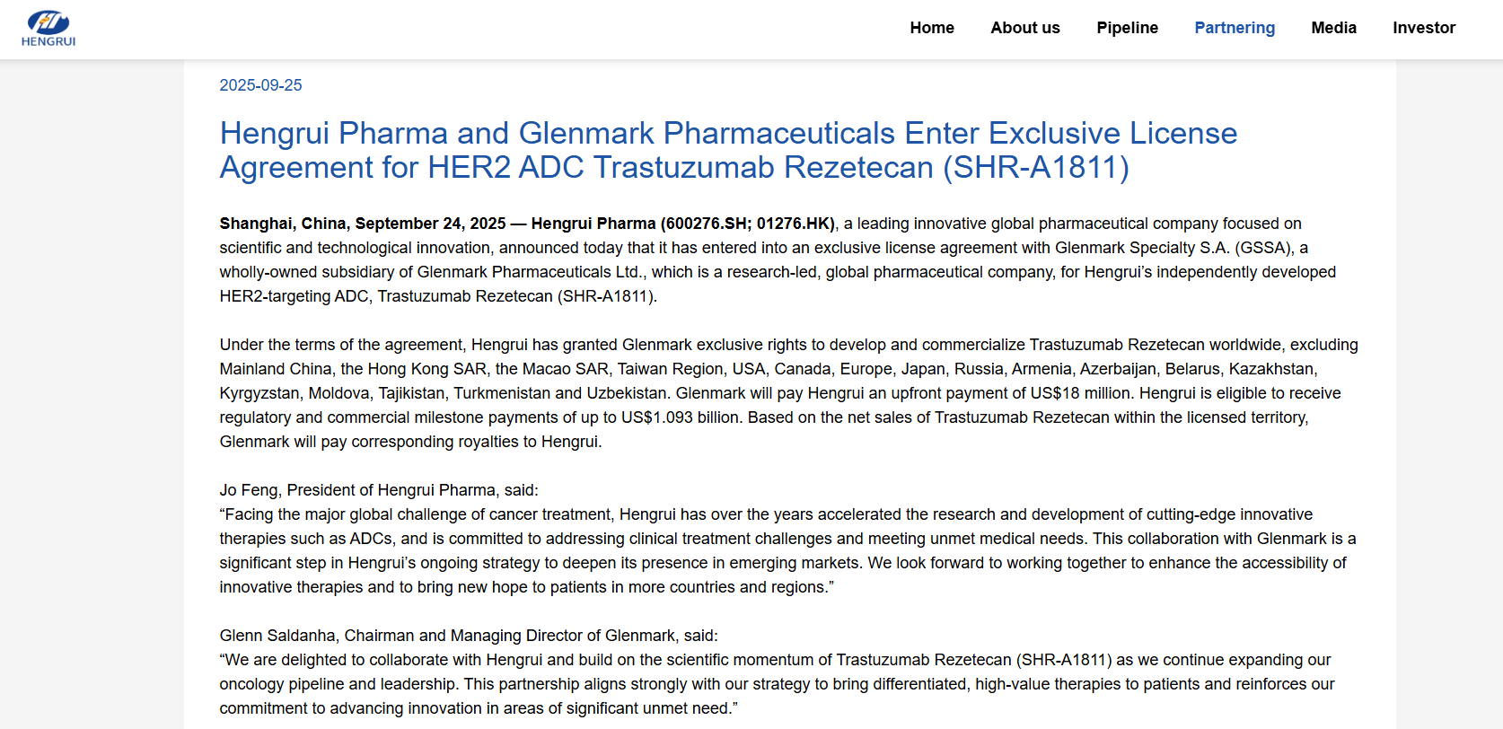 - 定位:Luzsana不仅是销售平台,更是“共开发”(Co-development)中心。它负责从恒瑞庞大的管线中筛选出适合国际市场的资产(初期选定11个高潜力项目),进行针对性的全球临床开发和注册。