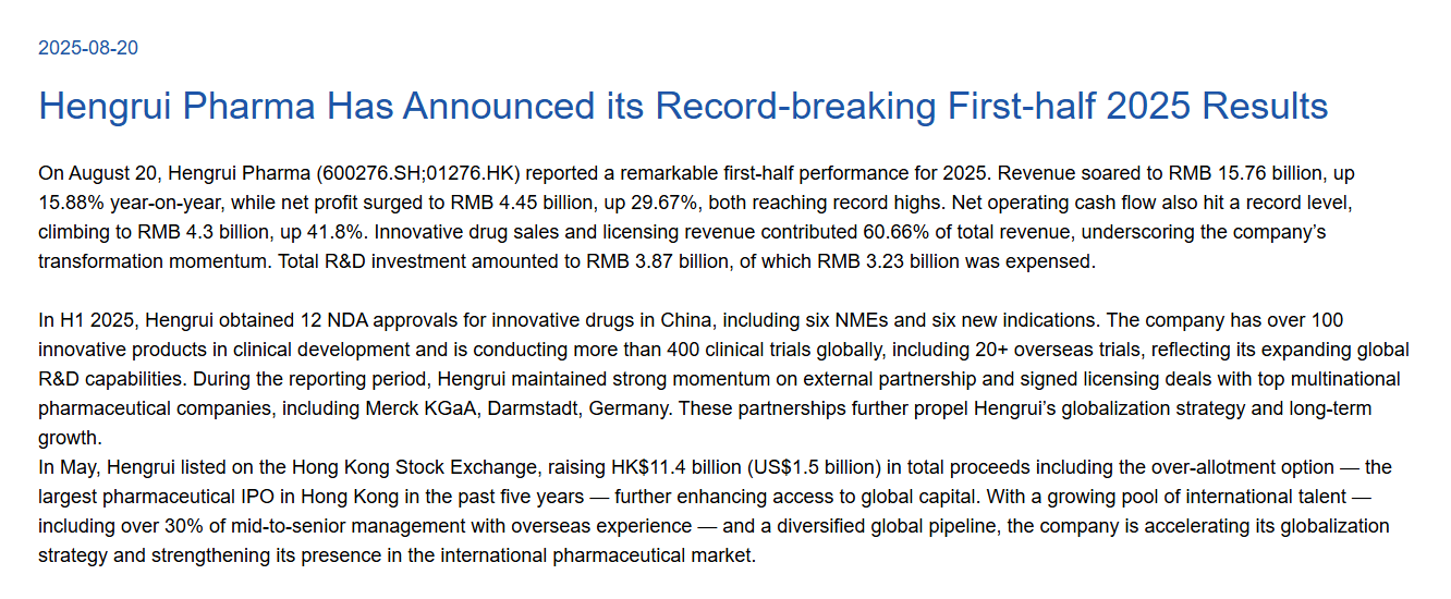 - 解决资金瓶颈:海外临床(尤其是慢病大样本试验)成本极高。通过NewCo融资,恒瑞利用外部美元基金完成了高风险、高投入的临床开发,避免了自身现金流的过度消耗。