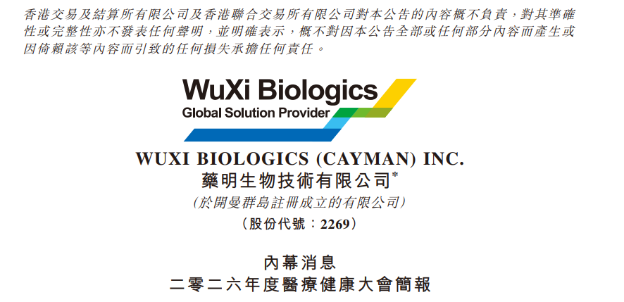 2026年1月11日,药明生物发布了2026年JPM大会的PPT。