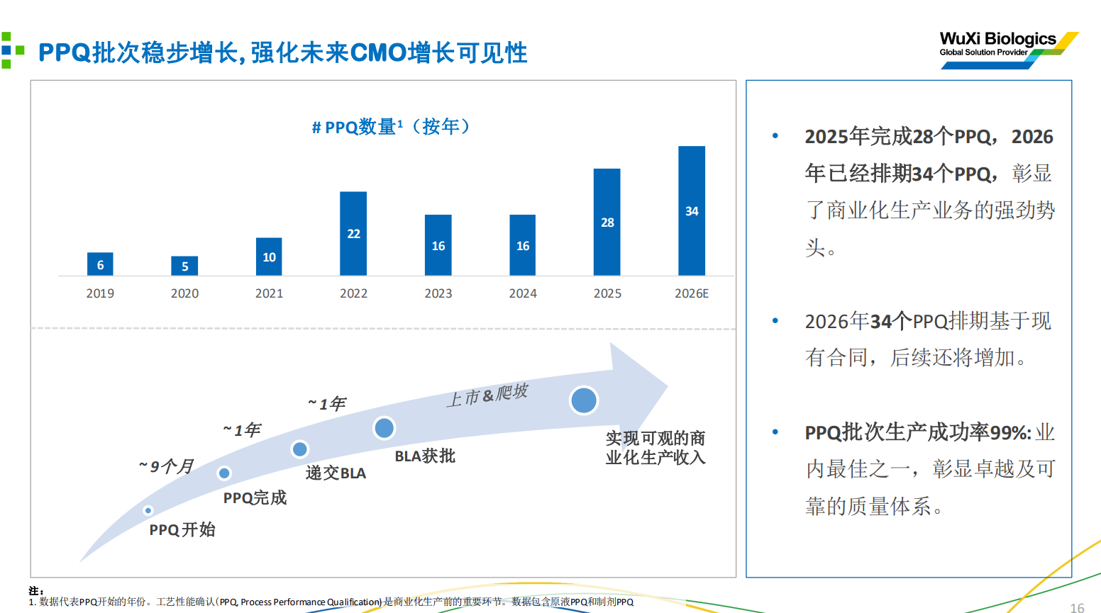 M业务:2025年完成28个PPQ,同比增长75%;2026年排期34个PPQ基于现有合同,后续还将增加,商业化生产业务有望加速增长。