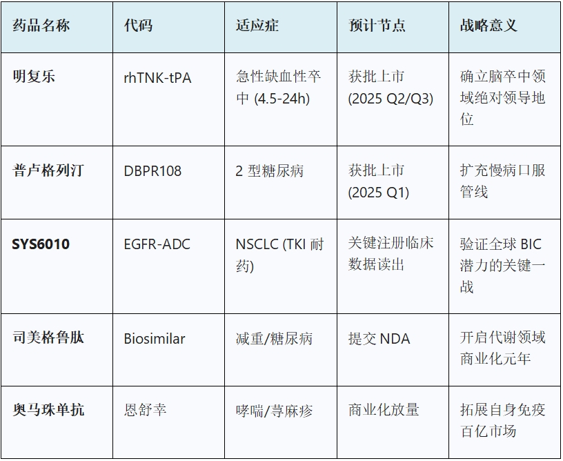神经系统护城河的再强化:恩必普(NBP)虽然面临专利悬崖压力,但通过剂型改良和下沉市场渗透仍保持韧性。更为关键的是,第三代溶栓药物明复乐(TNK-tPA)在2025年取得的重磅临床证据(NEJM/JAMA发表)及超长时间窗适应症的获批,将重塑中国缺血性卒中急救市场,有望接棒成为下一个50亿级大单品。