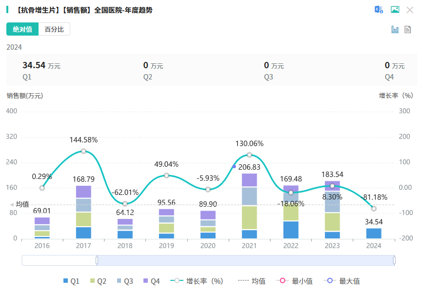其中,不少药品已经主动申请降价,包括卡度尼利单抗、德曲妥珠单抗、维泊妥珠单抗、抗骨增生片等品种。据摩熵医药数据库显示,其中抗骨增生片在2023年全国院内市场的销售额超180万元。