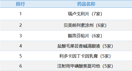 2. 贝美前列素涂剂(6家)