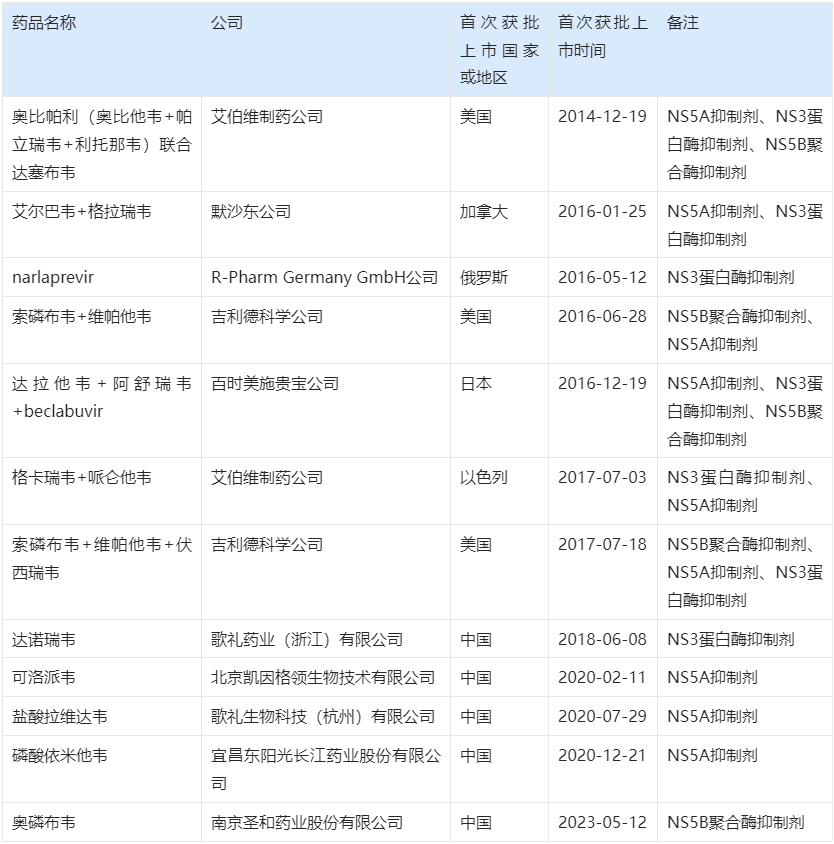 Harvoni上市后全球范围内获批上市的丙型肝炎治疗创新药