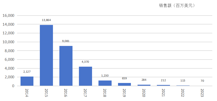 由于丙肝药物具有“治愈即终结”的特性,市场呈现出典型的“过山车”走势。各大重磅药物均在上市次年达到销售峰值,随后因患者群体迅速减少而急剧下滑。