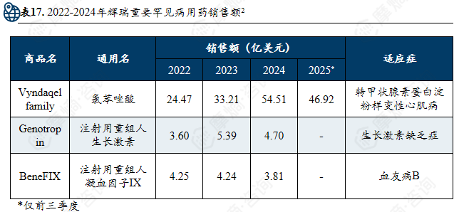 与诺华的激进风格不同,辉瑞在罕见病领域的定位是“成熟领域的稳健支柱”,凭借在甲状腺素蛋白淀粉样变性与血友病两大核心治疗领域的支柱产品及专业化团队,构建了一个商业化能力强、市场地位稳固的罕见病业务体系。