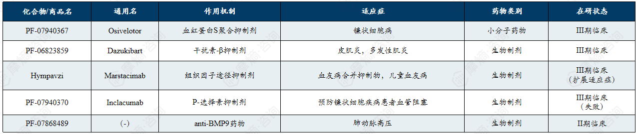 辉瑞罕见病药物领域主要在研管线