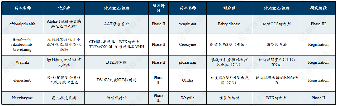 赛诺菲罕见病药物领域在研管线清单