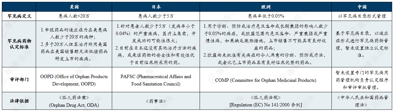 中美日欧对罕见病的定义标准及相关法律/政策依据