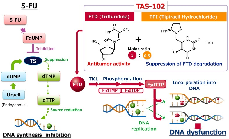 TAS - 102与5 - FU作用机制的比较
