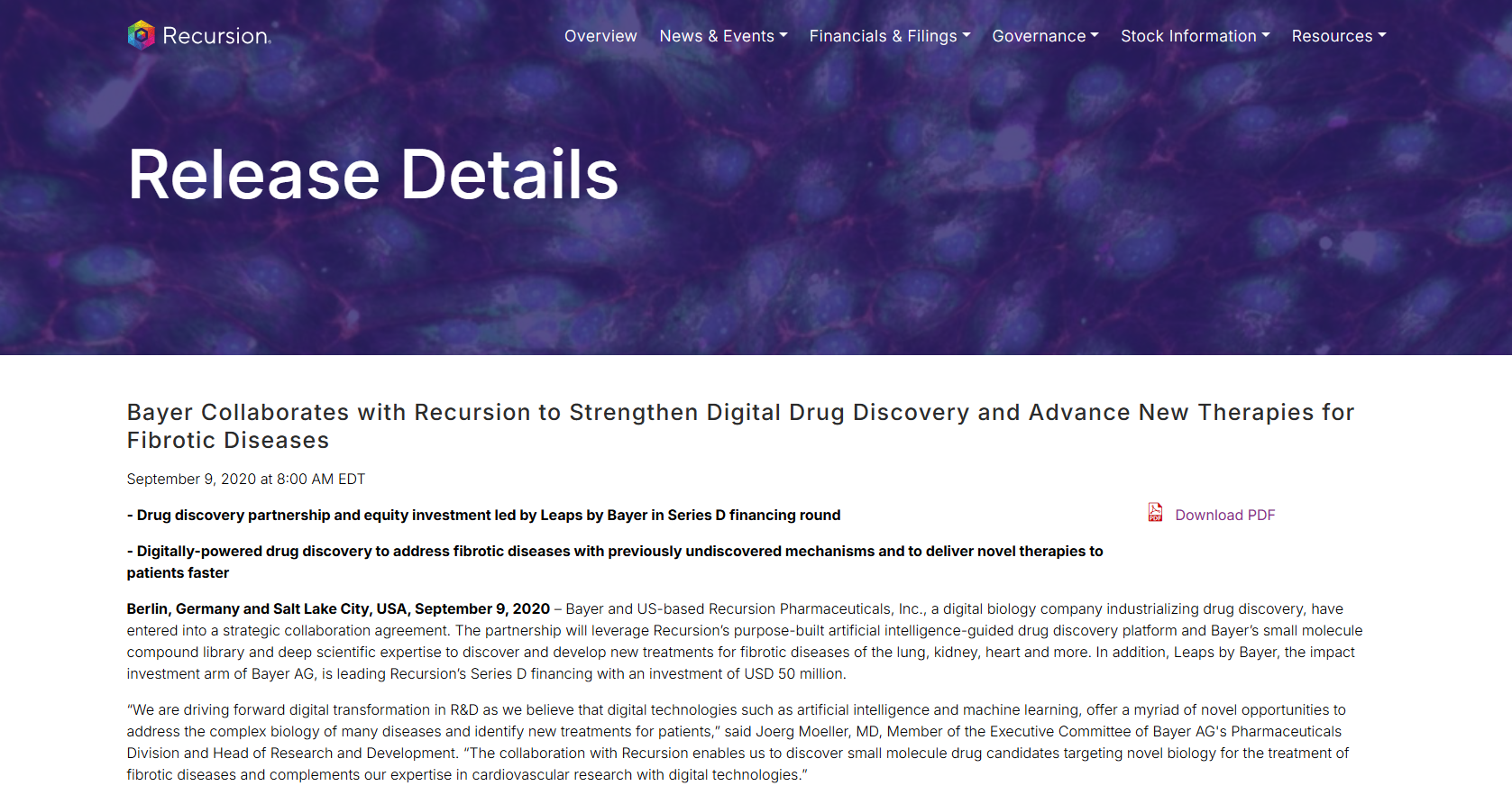 Recursion Pharmaceuticals合作:拜耳与Recursion深化合作,利用其AI驱动的“操作系统”进行高通量药物筛选,专注于纤维化疾病和肿瘤。拜耳成为Recursion大模型LOWE的首批Beta用户,旨在通过AI大幅缩短靶点发现周期。