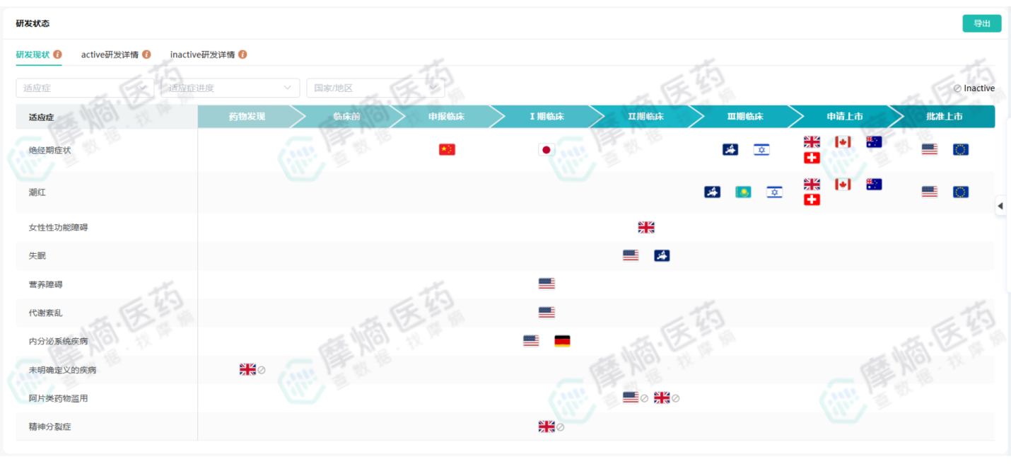 Elinzanetant(更年期治疗):Elinzanetant 是非激素类NK-1,3受体拮抗剂,基于摩熵医药数据显示,Elinzanetant 在2025年获得美国、欧盟批准上市,预计将成为拜耳在女性健康领域的下一个重磅炸弹,填补激素替代疗法的市场空缺。