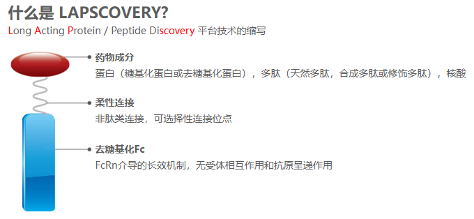 - LAPSCOVERY™ (Long Acting Protein/Peptide Discovery) 技术:一种长效化技术平台,通过将药物与特定载体连接,延长其在体内的半衰期,从而实现低频率给药。