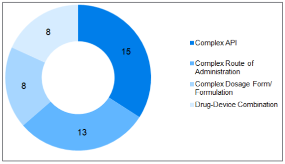 图1 基于复杂仿制药分类的产品数量。(参考3)