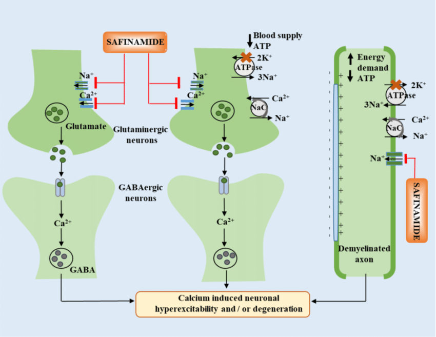 通过调节N型钙通道,沙芬酰胺 能有效抑制突触前膜兴奋性氨基酸(谷氨酸)的过度释放。鉴于谷氨酸兴奋性毒性在PD神经退行性变及异动症发生中的关键作用,这一机制提示沙芬酰胺可能具有神经保护及抗异动症的潜力。