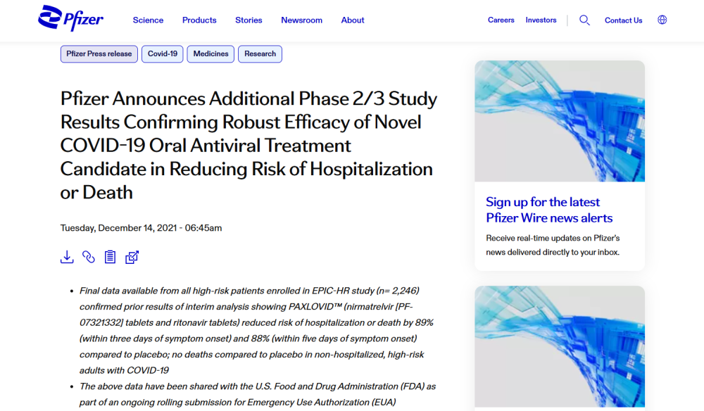 - 主要终点:在症状出现3天内接受Paxlovid治疗的患者中,与安慰剂组相比,住院或全因死亡的风险降低了89%。