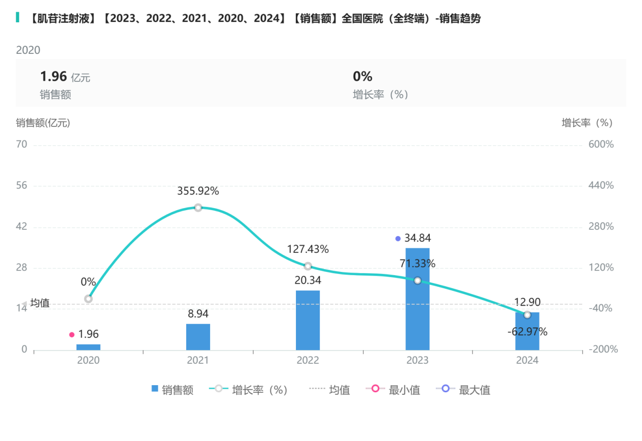 其中肌苷注射液主要治疗中心性视网膜炎、视神经萎缩等疾患。四年间销售额快速增长,2023年对比2020年销售额增长32.88亿元。