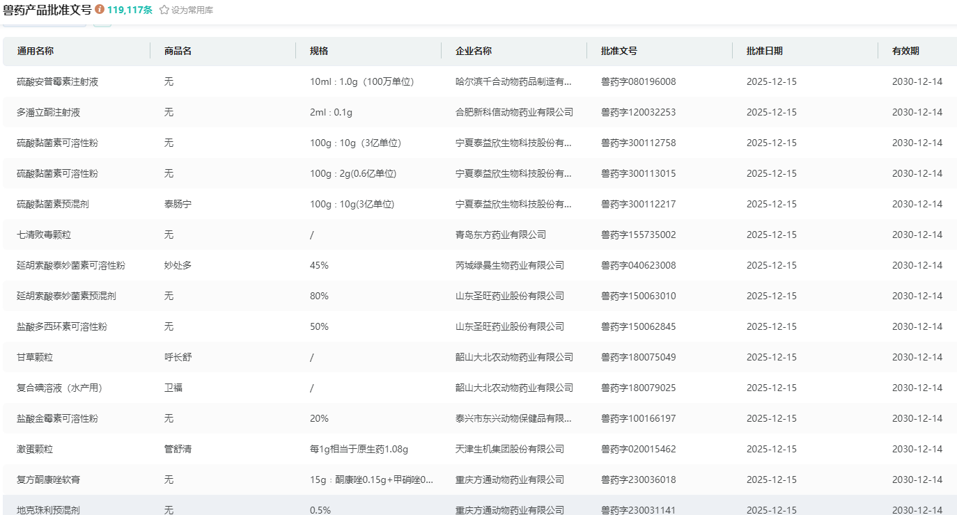 图片来源:摩熵医药-兽药产品批准文号数据库
