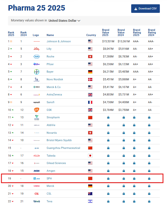 在全球顶级品牌评估机构Brand Finance发布的《2025年全球医药品牌价值榜》中,上海医药排名跃升至全球第19位,彰显了其跨越式突破的市场影响力。