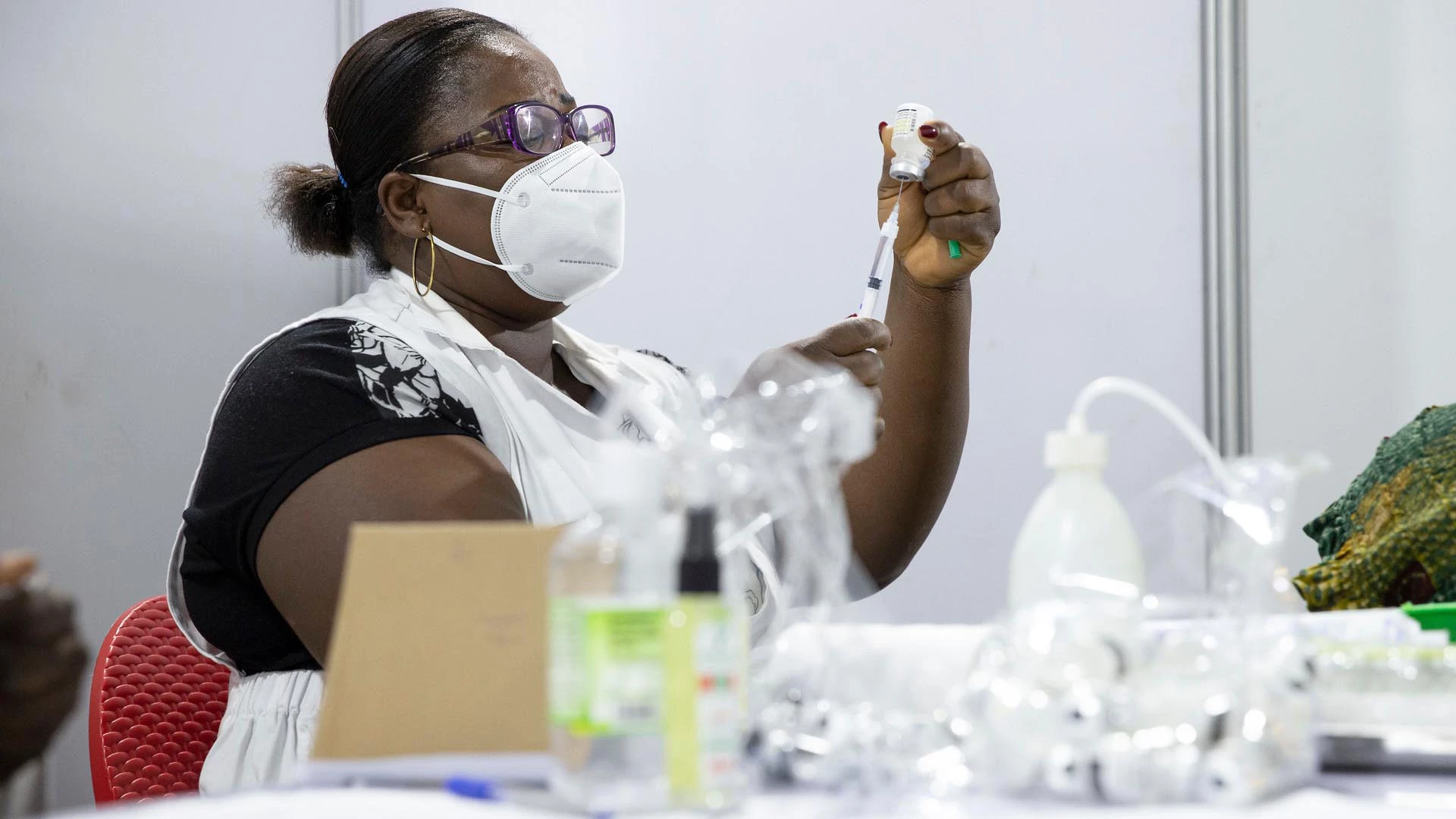 医护人员正在为患者准备新冠疫苗