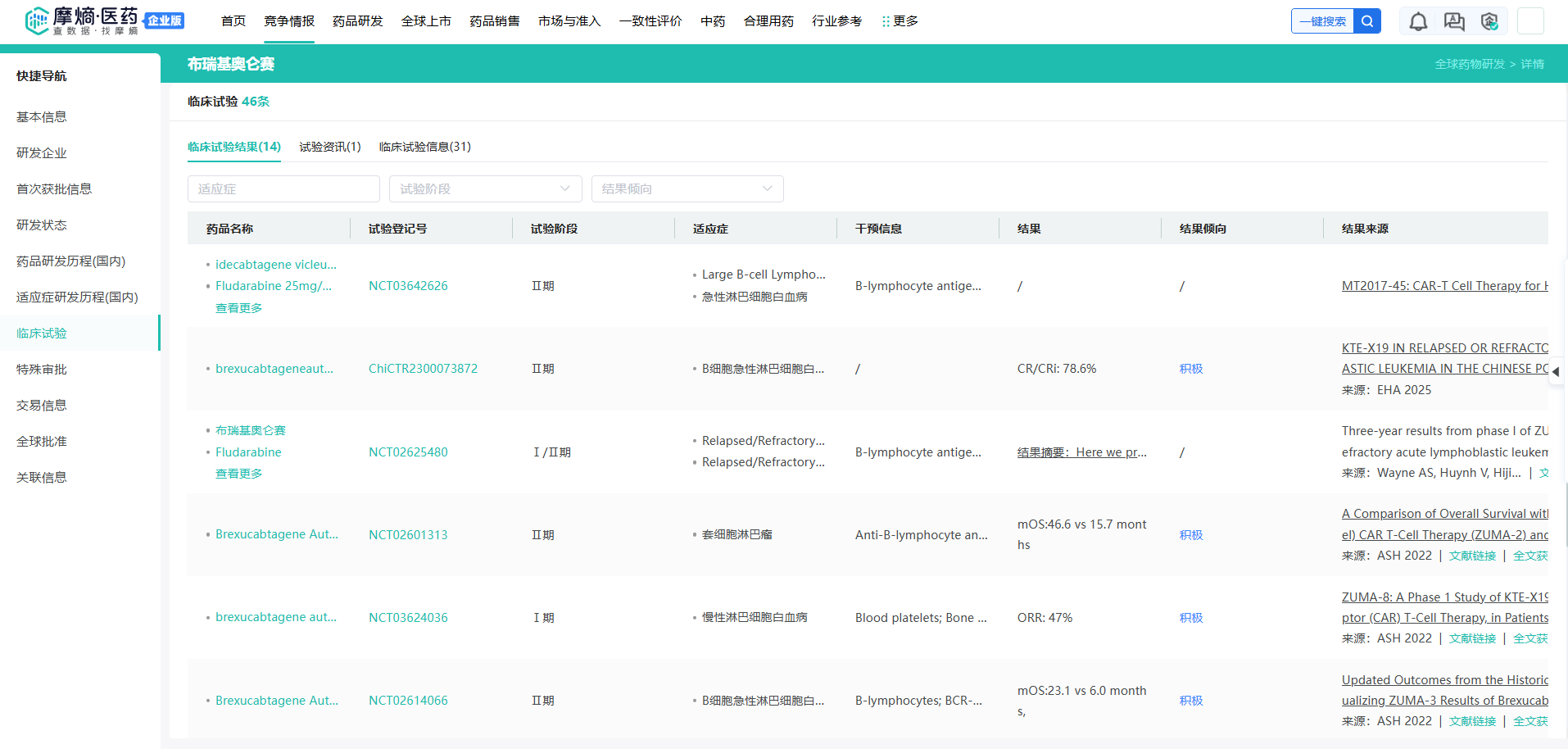 布瑞基奥仑赛临床试验信息
